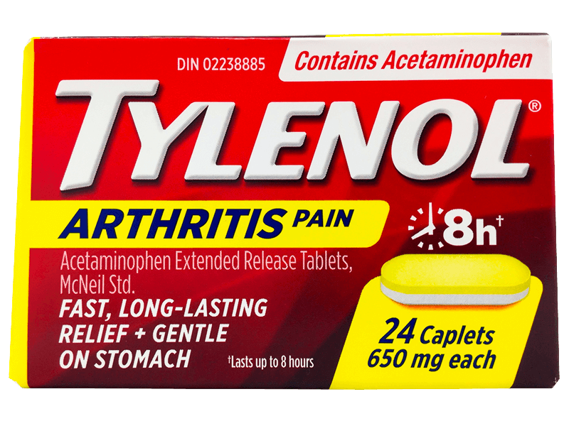 Now try TYLENOL® Arthritis Pain. TYLENOL® Arthritis Pain products use a patented bi-layer caplet for fast plus long lasting relief of arthritis pain for up to 8 hours. The first layer dissolves quickly to relieve pain fast. The second layer is time-released to provide extended relief that lasts all work day.*